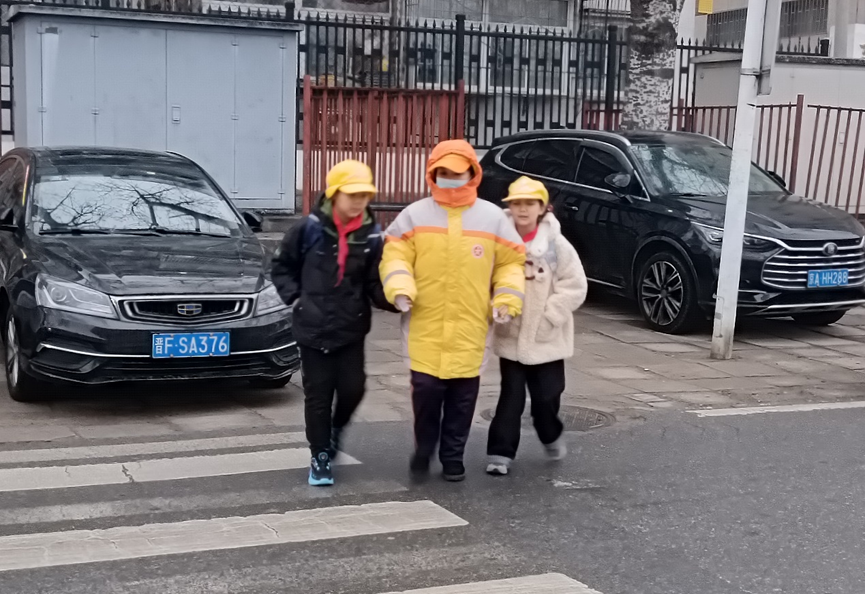 上学高峰时段,校园周边人流量、车流量大幅增加。引导员们手持引导旗,规范示意车辆礼让慢行,有序引导学生安全通过斑马线,有效维护校园周边交通秩序,保障道路通行顺畅。