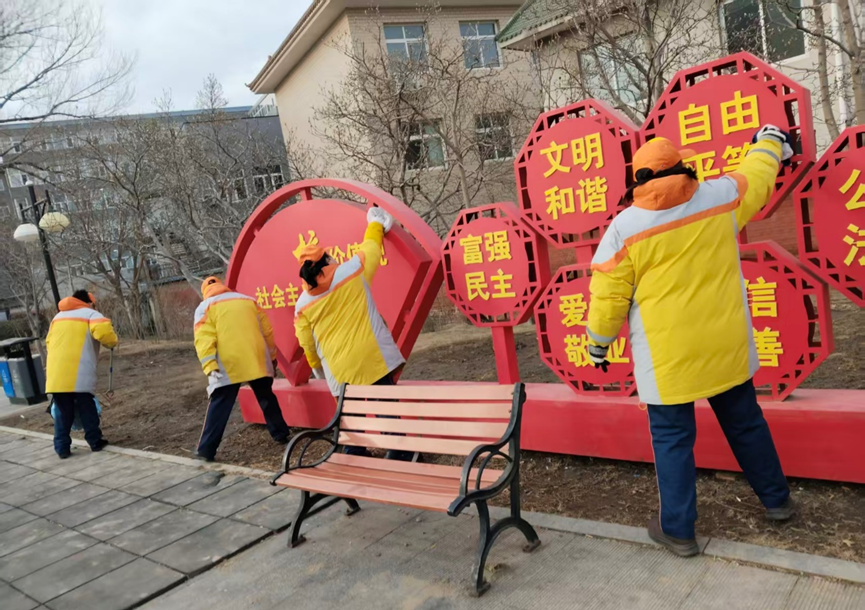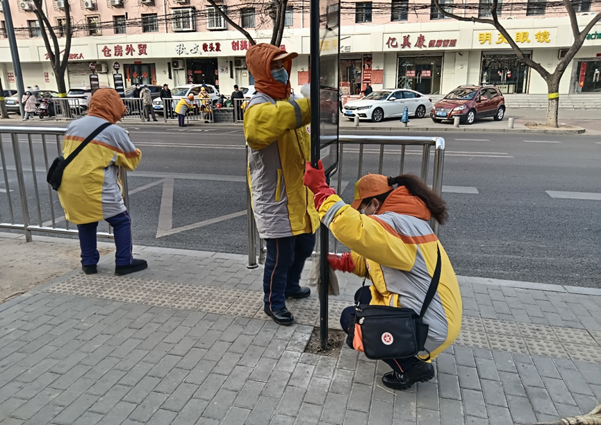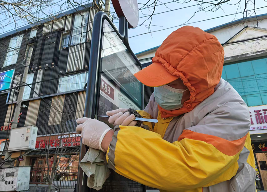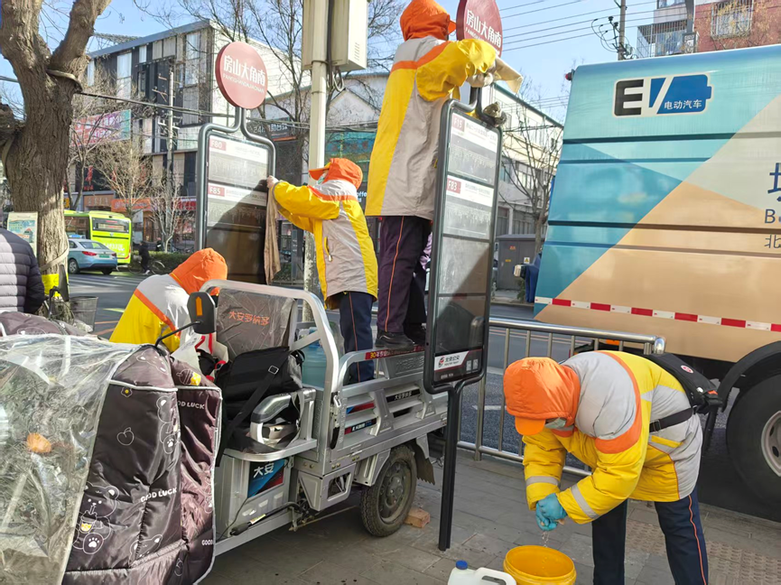 农历正月初七,房山中队全体队员自带水桶、抹布、扫把,主动来到各自服务站台,清理垃圾、擦拭站牌、护栏及宣传橱窗,为乘客营造干净整洁的站台环境。