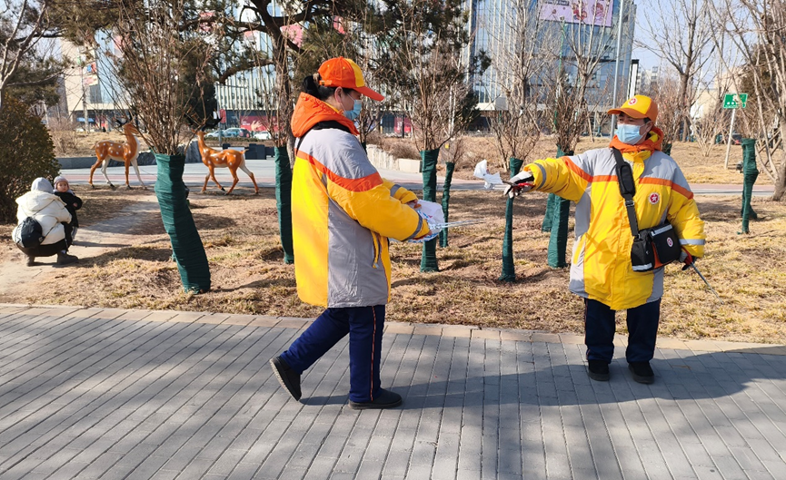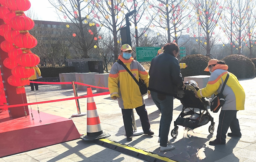 农历正月初五,良乡中队的“柠檬黄”相约来到区属塞纳公园开展志愿服务。
