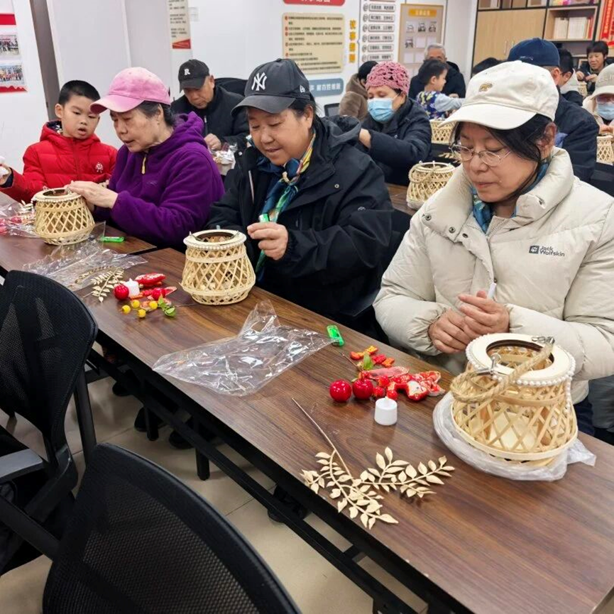 活动中,工作人员向居民介绍了元宵节的传统习俗与美好寓意。随后,工作人员为大家分发花灯制作材料,详细讲解制作步骤,并从花灯骨架搭建到装饰点缀,一步步带领大家动手制作。居民们认真学习、细心操作,从拼接骨架、粘贴装饰到系上铃铛,有条不紊地完成作品。一盏盏精致美观的花灯在大家的巧手中陆续诞生,居民们互相欣赏、交流心得,现场欢声笑语、暖意融融。