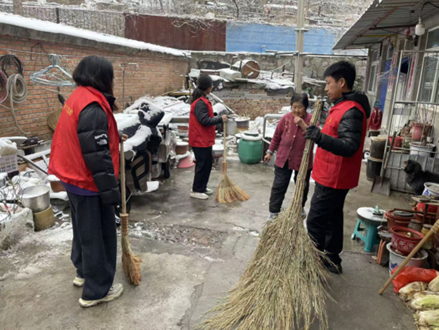 社区工作人员上门,对院内、院外的积雪进行清理,及时消除安全隐患,方便老人一家出行。清扫过程中,工作人员与居民亲切交谈,详细了解近期家庭生活状况和实际需求,叮嘱雪天注意防寒保暖、安全出行,用贴心服务和实际行动为困难家庭排忧解难。