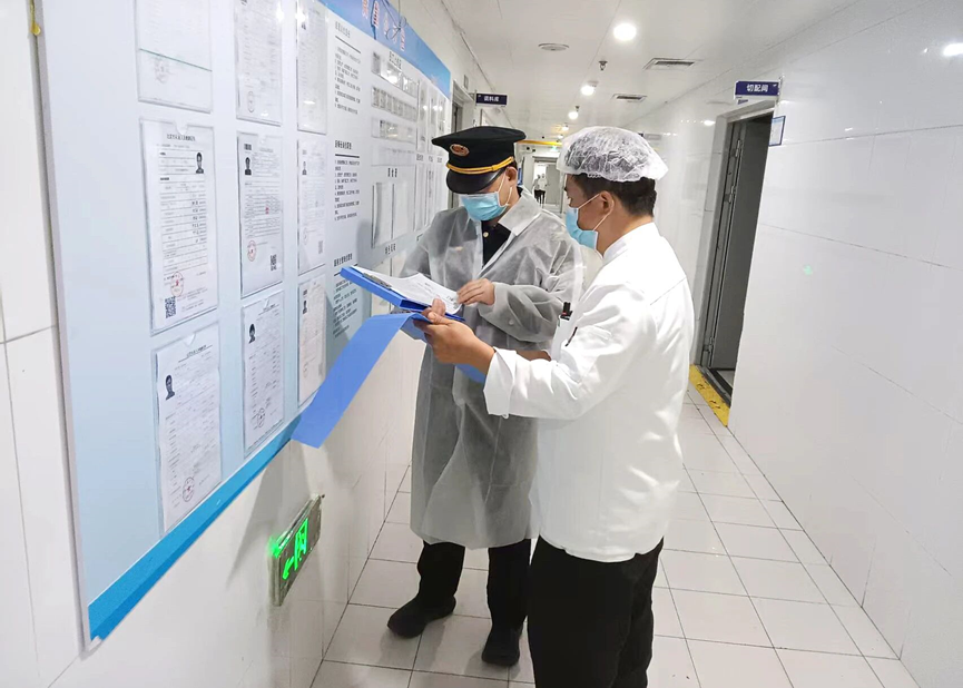 工作人员围绕“人员管理、食材采购、储存加工、餐具消毒、食品留样”等核心环节展开全覆盖细致检查。检查中,工作人员逐项核验从业人员健康证明,仔细查阅米面粮油、调味品等原辅料的进货票据与索证索票情况,细致查看食品留样制度是否严格落实、餐饮具清洗消毒流程是否规范。同时,对“明厨亮灶”系统运行情况进行全面排查。