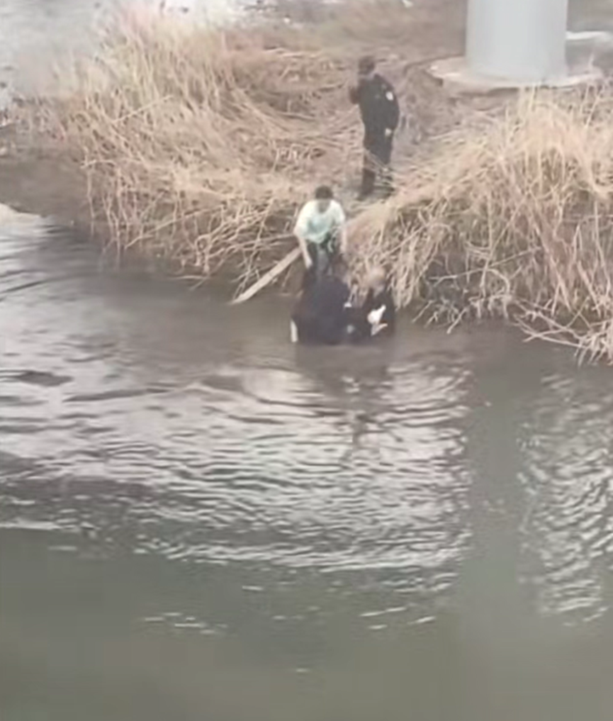 马刚奋力游至落水女子身旁,紧紧抓住其衣领,托住颈部与膝弯,向浅水区奋力游去。抵达浅水区后,他已体力透支、四肢僵硬,无力将女子抱起,却依旧跪在冰冷的河水与淤泥之中,一寸一寸艰难挪动,始终将女子稳稳托在水面之上,最大限度减少她与冰水接触。