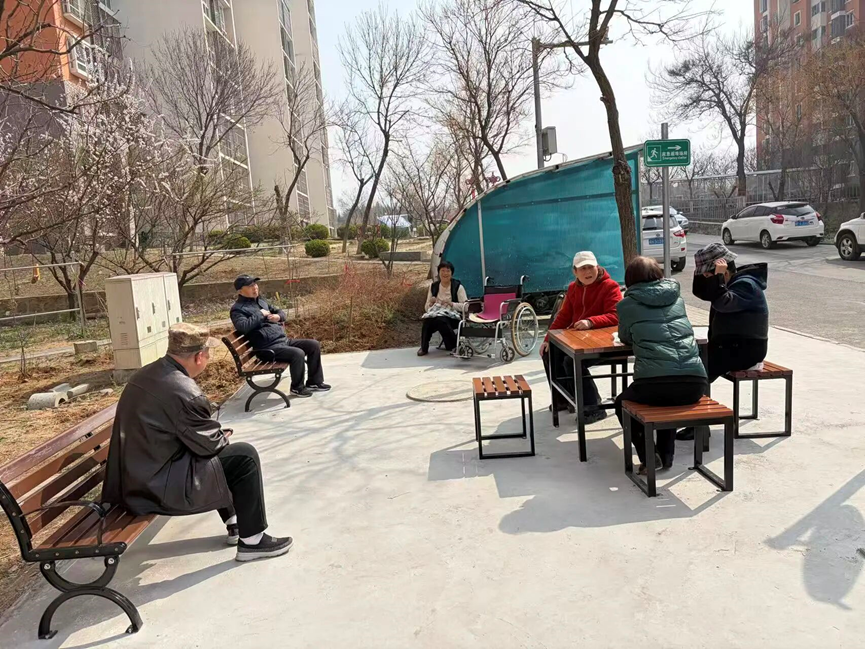 2号楼老年居民占比较高,此前居民们日常休闲时多围坐废旧沙发、石墩,或自带小板凳在路边闲聊,且存在“垃圾杂物堆积、居民休息无方”的突出问题,社区党委发挥党建引领作用,通过实地走访、资源整合,在街道社区办的大力支持下,让居民亟待解决的休闲难题得以圆满解决,实现从“环境整治”到“情感维护”的升级。