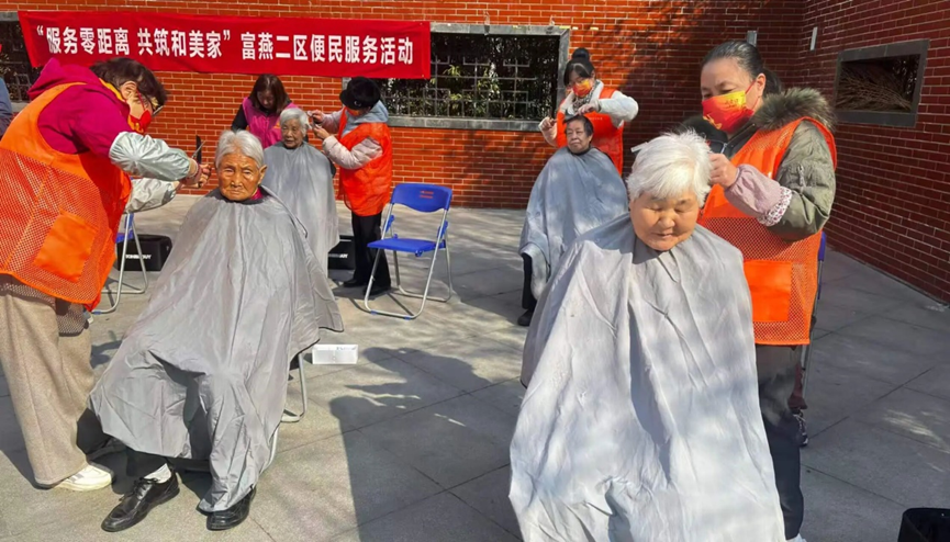在健康检测区,志愿者为居民免费测量血压、血糖,提供中医把脉、验光、口腔检查及健康咨询服务,耐心解答各类健康疑问,全力“护健康”,引导大家树立科学健康的生活理念。恰逢“二月二”龙抬头,在便民服务区义务理发吸引了众多老年人在现场排起了长龙,志愿者老师手法娴熟、耐心细致,一边与老人唠家常,一边根据他们的要求修剪出满意的发型,让老人们“焕新颜”。一推一剪皆是情,实实在在解决了社区老年群体特别是行动不便人员的“头等大事”。