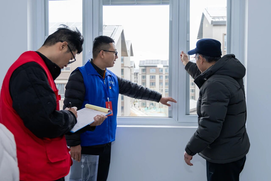 在窦各庄中心区定向安置房二期回迁交付现场,39名机关青年干部与社区书记化身“红色管家”,构建“一办一队十二组”组织体系,创新“五个一”治理模式,实行“一户一志愿者”全程陪验。通过“专业验房+政策翻译”双驱服务,他们严把质量关、化解矛盾、解答疑惑,助力420余户群众圆梦新居,助力构建“三位一体”共治新格局,让民生保障更有力度。