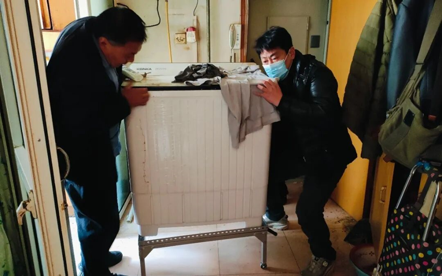 46号楼的陈大叔,因肢体残疾行动不便,家中空间狭小,上下水条件受限,所以洗衣机长期闲置无法使用。于是老人向北里社区“我来办”工作站打电话求助。
