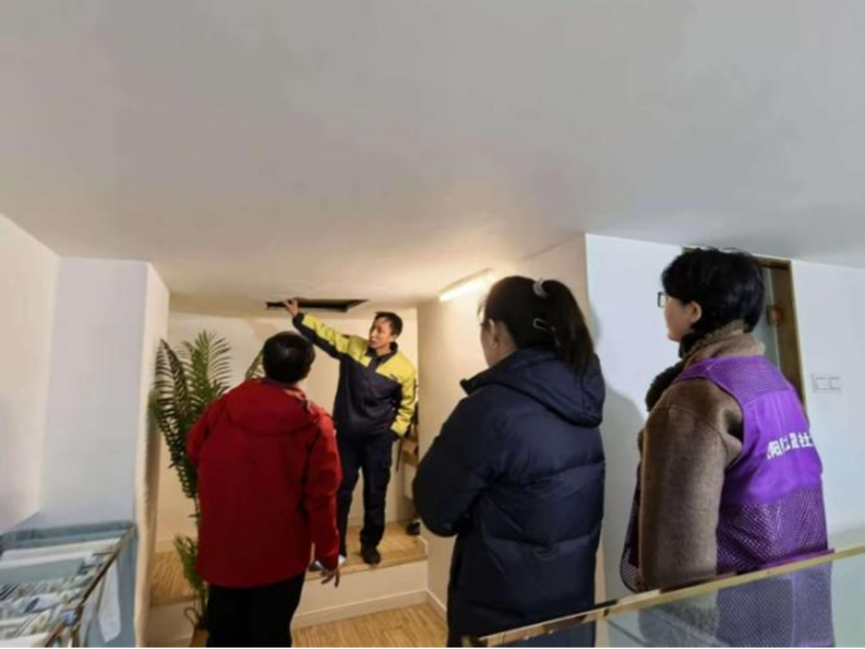 此前,家住九晟社区的居民发现自家天花板出现破损,怀疑是楼上漏水所致,并担忧存在安全隐患,随即向社区反映情况。群众诉求无小事,九晟社区第一时间启动响应机制。社区工作站站长与物业管家、专业维修人员上门“会诊”,并迅速查到破损原因。