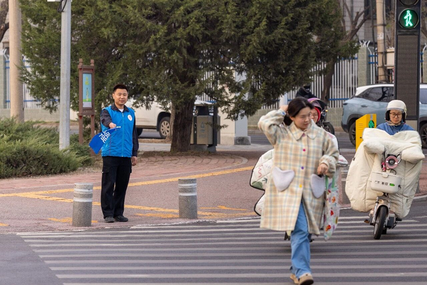 每天早晚高峰,无论严寒酷暑,志愿者都准时出现在路口。他们不单是秩序的引导者,更是文明的传递者——“举旗示意+微笑劝导”柔性引导方式,让机动车的礼让率悄然提升,闯红灯等不文明行为日渐减少。