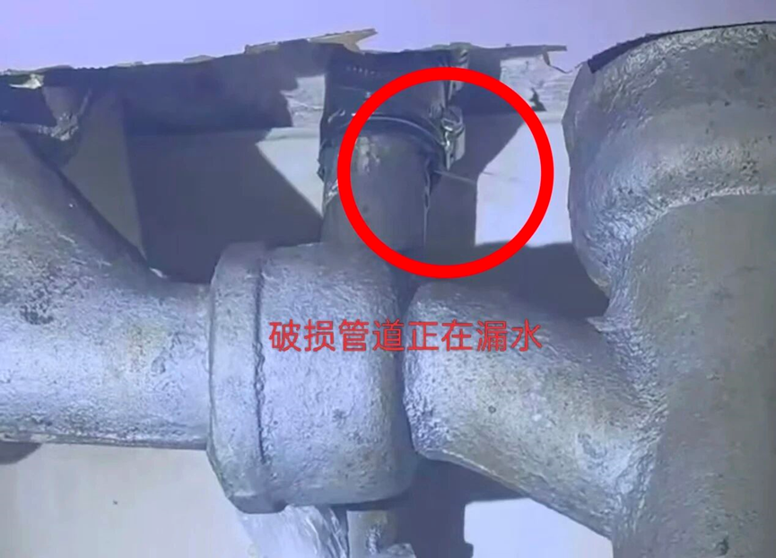 居民反应家中漏水情况后,社区与物业工作人员第一时间上门核查,经专业检测确认,漏水原因为楼板间公共主管道破损渗漏。