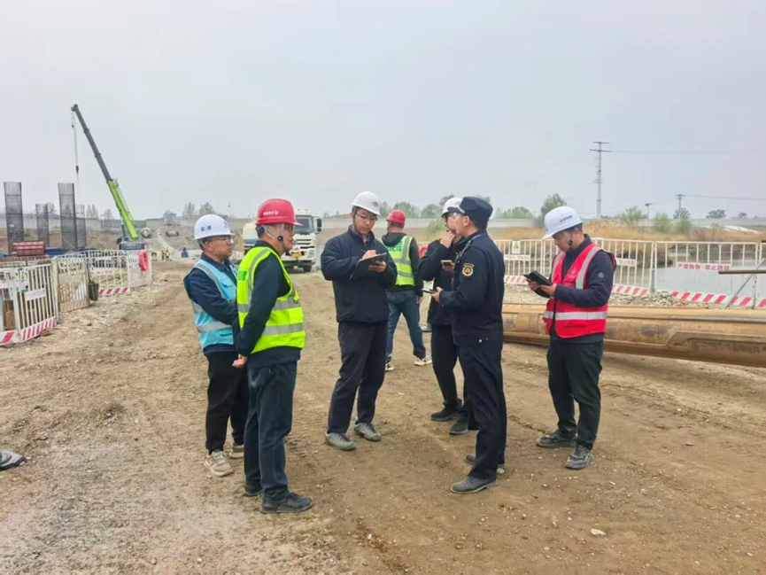 检查组聚焦河道水工程关键环节,重点检查安全巡查、隐患整改、动火作业报备及现场监护落实情况,确保全流程规范可控;同步检查扬尘管控、裸土覆盖、洒水降尘、车辆冲洗等扬尘措施落实情况,切实守护河道周边生态环境。