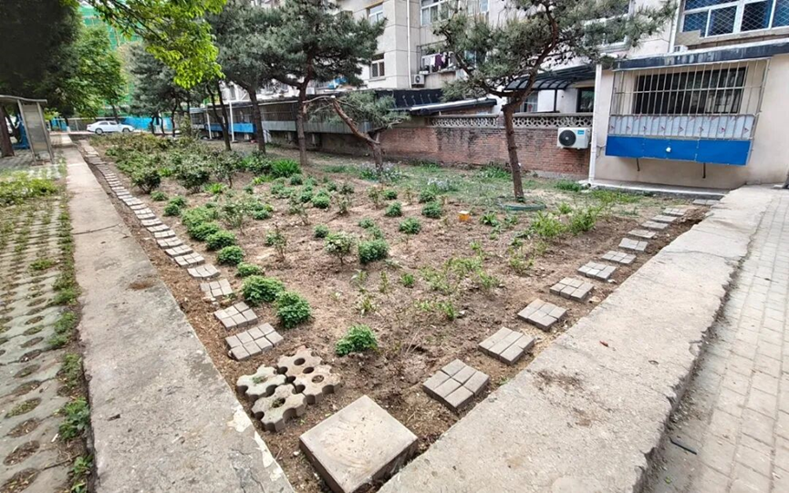 羊二社区针对辖区内施工遗留的废弃砖头、建筑废料,主动与物业沟通协商,变废为宝、就地利用。工作人员将废弃砖块平整铺设在45号楼后小花园内,作为踏步石使用,并与原有步道衔接连通,形成一条整洁实用的花园小路。