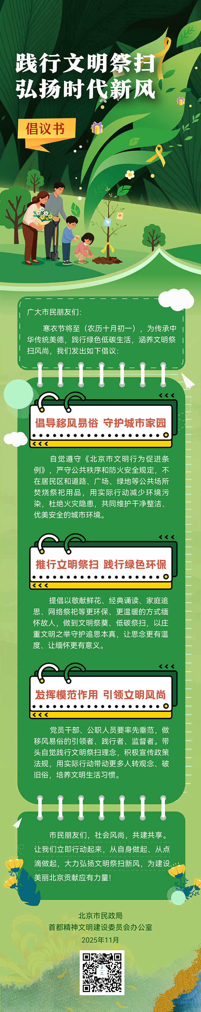 自11月6日起全面启动集中宣传,通过“北京海淀”“文明海淀”等50个媒体平台,推送文明祭扫主题文章90余篇,并在全区29个文明实践所、641个实践站广泛张贴倡议书与宣传海报7000余张,营造“移风易俗、文明追思”的浓厚氛围。