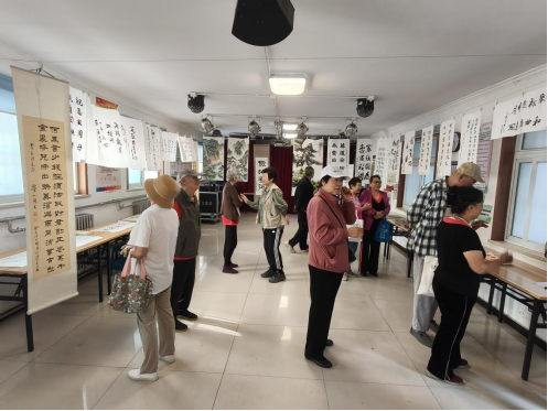 近日,门头沟区大峪街道月季园二区社区组织广大党员群众在综合文化室开展“‘翰墨飘香,艺韵社区’庆中秋、迎国庆书画展”活动。