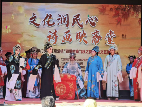 作为斋堂镇本年度重点打造的品牌文化活动之一,本次演出以“文化润民心 诗画映斋堂——2025年‘四季村晚——秋之悦’”为主题,充分结合地域特色——既依托秋日山区丰收的浓厚意蕴,又深度挖掘爨底下古村的文旅价值,将“小院有戏”剧场与“戏剧京西”精品演出资源相融合,实现“1+1>2”的多元文化协同效应。活动现场,经典评戏《五女拜寿》的演出成为核心亮点,长达两小时的演绎,传统戏曲的独特韵味层层展现,细腻唱腔与鲜活表演交织,既让观众沉浸式体验艺术魅力,又为在场群众打造了一场高质量的文化盛宴。