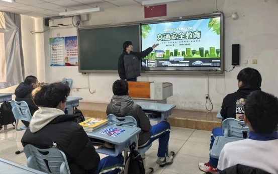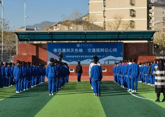 全区各学校组织学生集中观看非机动车骑行交通安全警示教育片,通过典型案例强化骑行安全和交通规则意识,并结合现场讲解、互动提问等方式提升教育实效。区教委与区交通支队联合制作《致全区初/高中学生及家长交通安全的倡议书》,并在北京市第八中学永定实验学校举办主题为“电动自行车全链条整治”的交通安全专题讲座,引导学生规范骑行行为,提醒家长履行监护职责,将交通安全教育进一步延伸至家庭端,推动形成家校社协同参与的交通安全共治格局。京师实验学校利用升旗仪式开展以“寒风凛冽天色暗 交通规则记心间”为主题的冬季交通安全教育,提醒学生在天色昏暗、车流密集的冬季务必提高警惕,规范过马路、不在校门口追逐玩耍等注意事项。中等职业学校通过主题班会、家校群提示等方式加强骑行安全教育,完善电动车管理措施,强化学生的日常安全意识。琉璃渠小学通过国旗下讲话、主题班会、互动游戏等生动形式,引导师生在轻松氛围中掌握基本交通安全常识,增强宣传教育的实际效果。各学校加强上下学交通秩序管理,严格落实校园周边“三区三岗”设置,护学力量在上下学高峰时段到岗,引导师生安全有序通行。