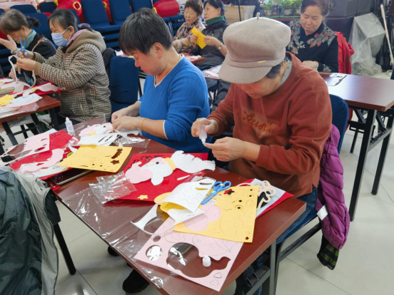 活动现场,社区工作人员为大家讲解马年挂饰的制作步骤与技巧,从部件剪裁、拼接粘贴到流苏装饰,每一个环节都细致演示。居民们热情高涨,纷纷动手创作,邻里之间交流技巧、分享创意,现场欢声笑语不断。大家根据自己的喜好搭配颜色、装饰细节,原本普通的材料在巧手下变成了一个个造型可爱、寓意吉祥的马年福字挂饰。