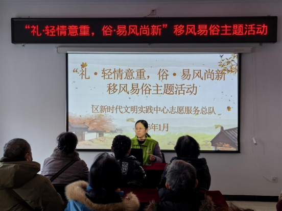 为深入推进社会风气向善向好,1月6日,门头沟区新时代文明实践中心志愿服务总队在大峪街道温馨家园组织开展“礼·轻情意重,俗·易风尚新”移风易俗主题活动。