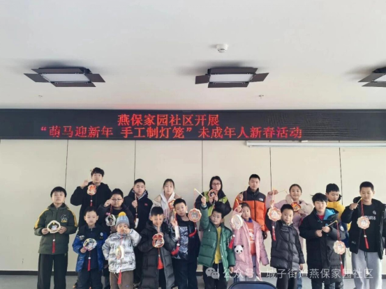 为传承中华优秀传统文化,营造欢乐祥和的新春氛围,丰富未成年人假期精神文化生活。近日,门头沟区燕保家园社区组织开展“萌马迎新年 手工制灯笼”未成年人新春主题活动。