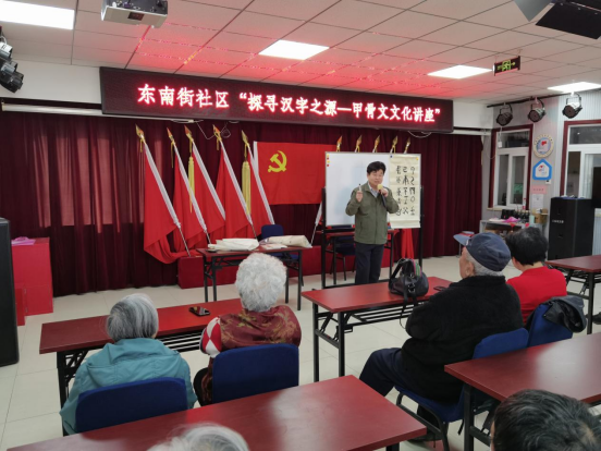 为弘扬中华优秀传统文化,增进辖区居民对汉字起源与发展的了解,提升群众文化素养。近日,门头沟区东南街社区特邀古文字学专家,举办“探寻汉字之源——甲骨文文化”讲座,共20余居民参加。