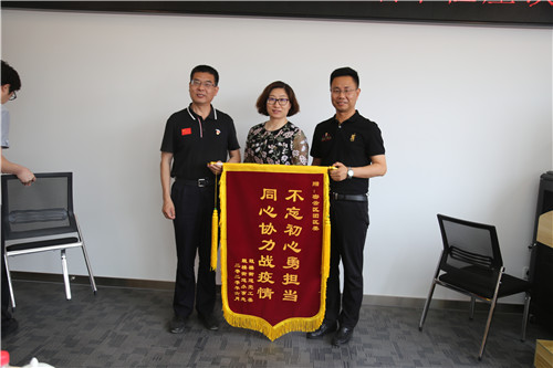 座谈结束,鼓楼街道主要领导分别向支援单位赠送锦旗,表达对他们的感谢。
