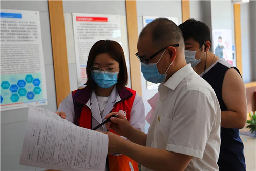 在中心血站青年服务队的引导下大家仔细填写登记表、测量体温、血压等常规检查,整个流程有条不紊