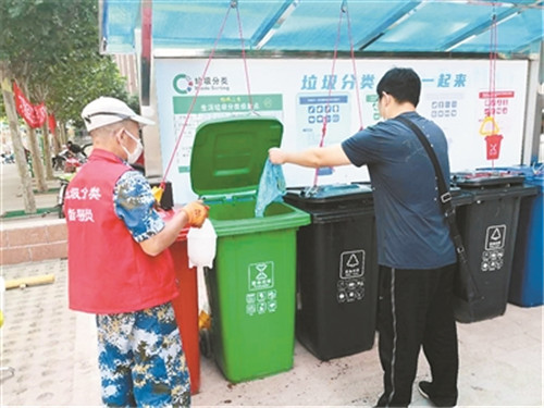 为解决困扰居民室外垃圾分类后的洗手问题,方便居民分类投放垃圾,密云区鼓楼街道向阳西社区在垃圾桶站设置便捷拉绳,一拉绳子就可轻松打开垃圾桶盖,解决了居民投放垃圾脏手的问题。鼓楼街道坚持党建引领垃圾分类,在引导物业履职、组织党员示范、带动群众参与的同时,积极主动听取居民意见建议,开拓思路,创新垃圾分类好途径好做法,真正解决居民在垃圾分类过程中遇到的实际问题,推动辖区垃圾分类工作落地落实。