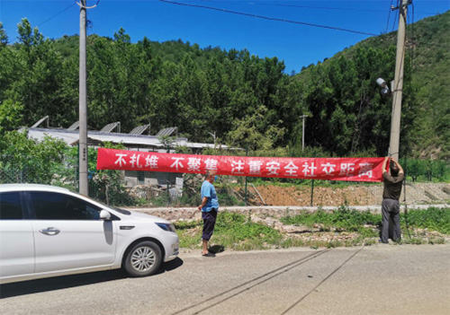 各村通过村村响广播、入户宣传等方式宣传疫情防控相关工作要求,持续开展排查,卡口加强执勤,张贴、悬挂宣传标语。