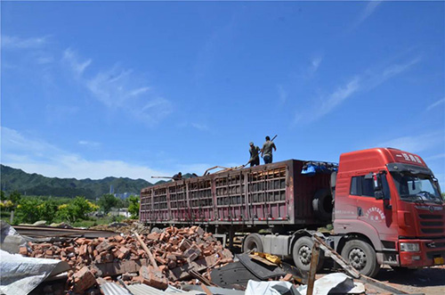 日前,密云区巨各庄镇黄各庄村巨隆大街南侧的某大型违建工业厂房中,大型机械和10几名工人正在对厂房主架构实施拆除,运输车辆将拆除后的各类杂物进行清理,现场一派繁忙的作业场景。