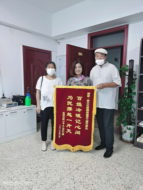 24日早晨一上班,两名家住长安小区34号楼的居民带着一幅锦旗赶到了密云区鼓楼街道办事处。“雨季前街道给我们修好了屋顶,我们一定要来感谢党和政府……”大妈双手举着锦旗激动地说。锦旗上绣着“百姓冷暖记心间 为民撑起一片天”几个大字。