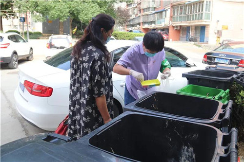 今年5月,生活垃圾分类工作推广以来,张兴旺发挥党员先锋模范作用,从网上自费购买四类垃圾分类桶,按照分类标准约束自己形成习惯,并带领家人朋友参与垃圾分类。除此之外,老张还利用业余时间志愿担任垃圾分类指导员,在社区垃圾投放的高峰时段为街坊邻里指导分类,宣传垃圾分类知识。