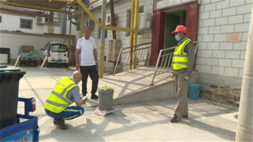 炎热的夏季,食物厨余等垃圾很容易变味、发臭,两位师傅分拣收集起垃圾来,没有一丝“拈轻怕重”的感觉,动作看起来相当娴熟,一人扫码登记,一人检查桶内垃圾分类是否正确;一人精准称量,一人“小桶倒大桶”;一人二次分拣,一人纠正户主错误的分类,一系列工作配合默契,一气呵成。