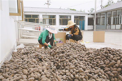 近日,密云区古北口镇汤河村村委会大院内人来人往,正在打包有机农产品黑土豆。大家拎着大桶、小桶往里走,俨然一派忙碌的场景。“慢点倒,别摔坏了,装箱子的时候挑匀溜的,码放整齐,别路上一摇晃里面就散了。”汤河村村委兼支委王永强这样嘱咐着。