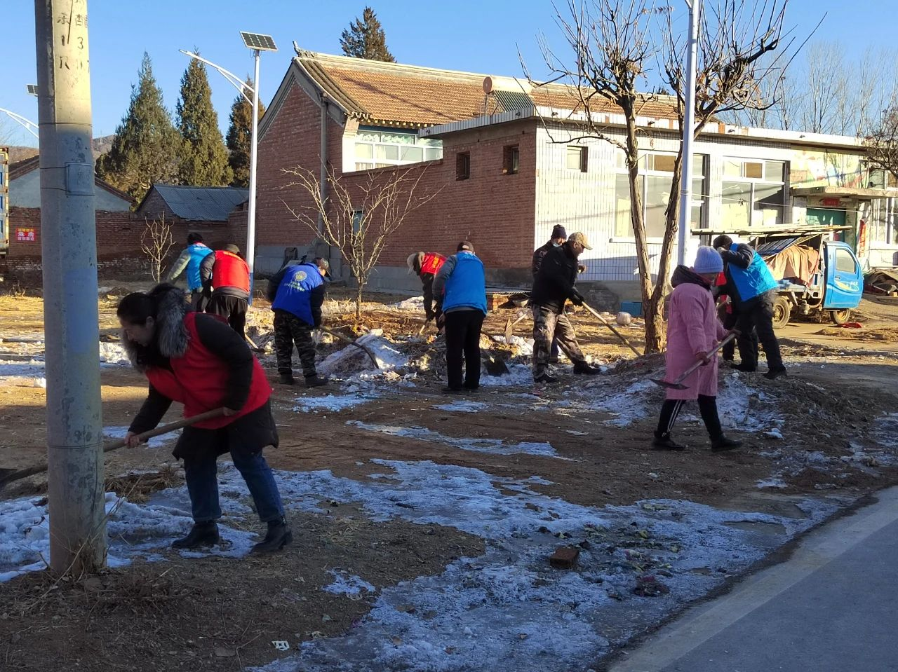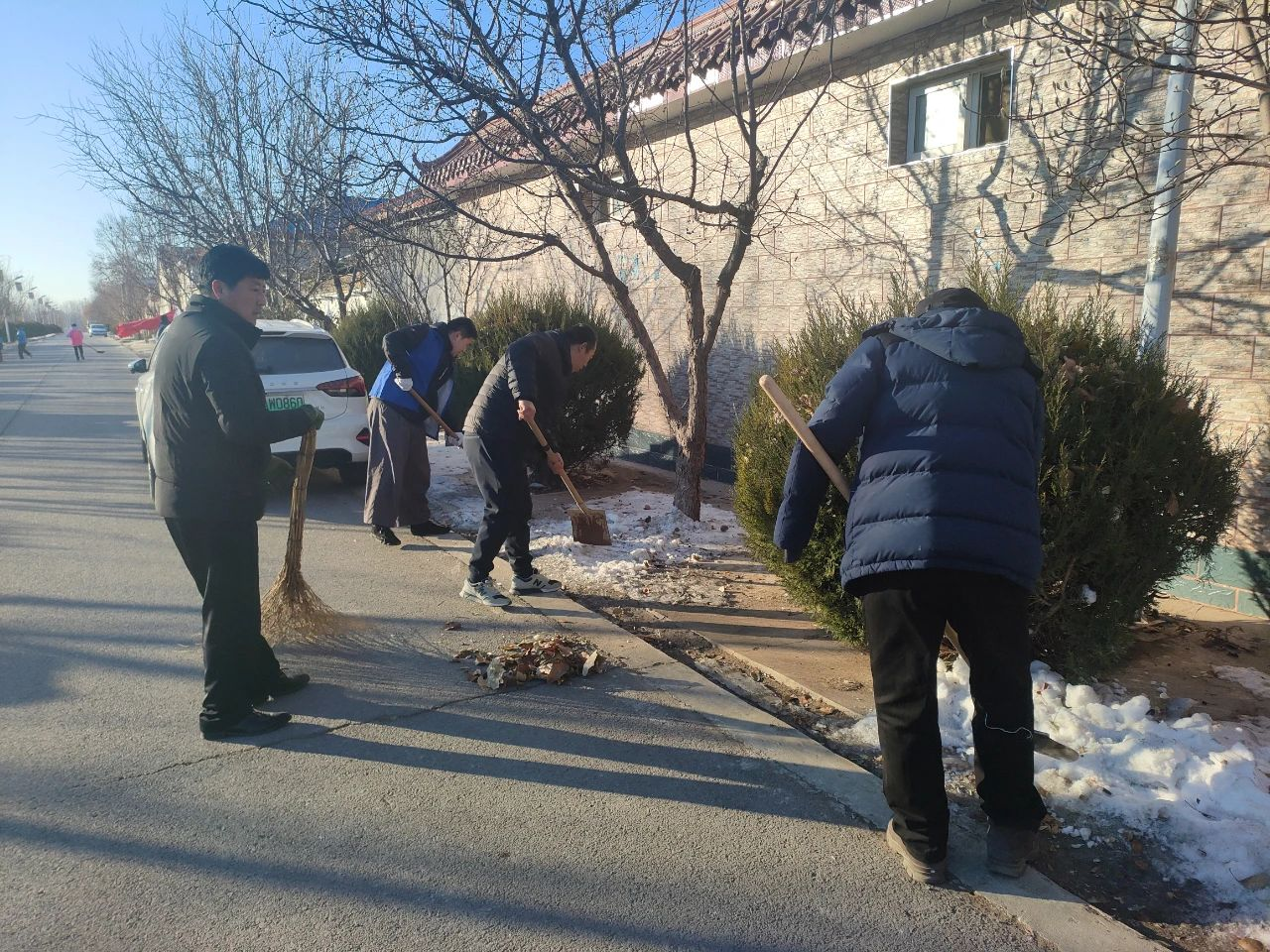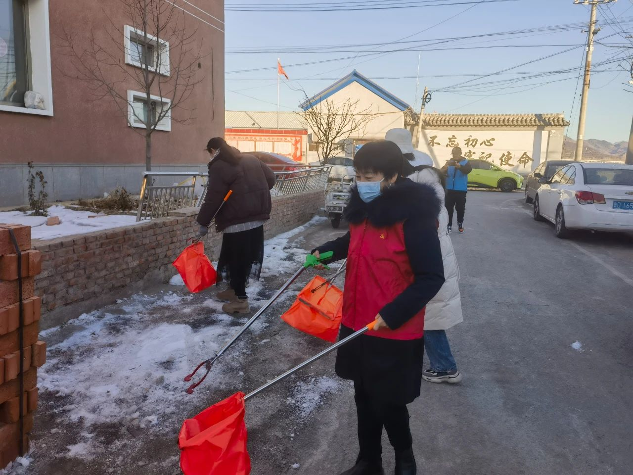 活动中,各村党员、群众紧密围绕在党组织周围,合理分工,密切合作,有条不紊的进行着卫生清理。大家不怕脏,不怕累,手拿扫帚、铁锹、夹子、袋子等工具,认真的清理着道路两旁的积雪、杂物,烟头、纸屑和白色垃圾。