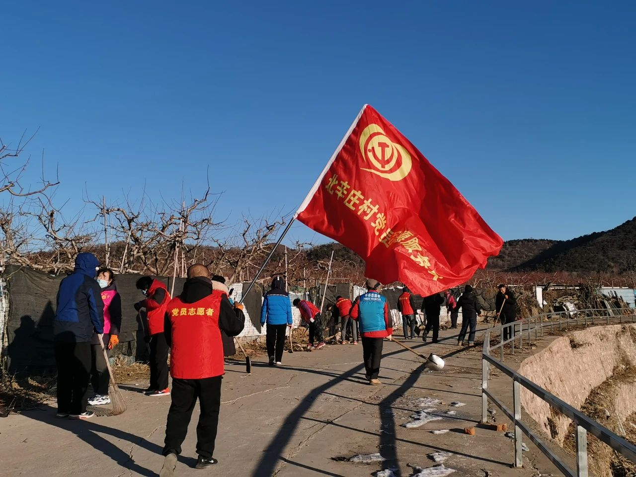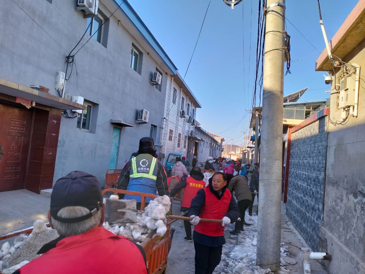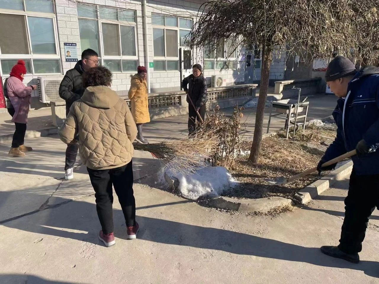 活动中,各村党员、群众紧密围绕在党组织周围,合理分工,密切合作,有条不紊的进行着卫生清理。大家不怕脏,不怕累,手拿扫帚、铁锹、夹子、袋子等工具,认真的清理着道路两旁的积雪、杂物,烟头、纸屑和白色垃圾。