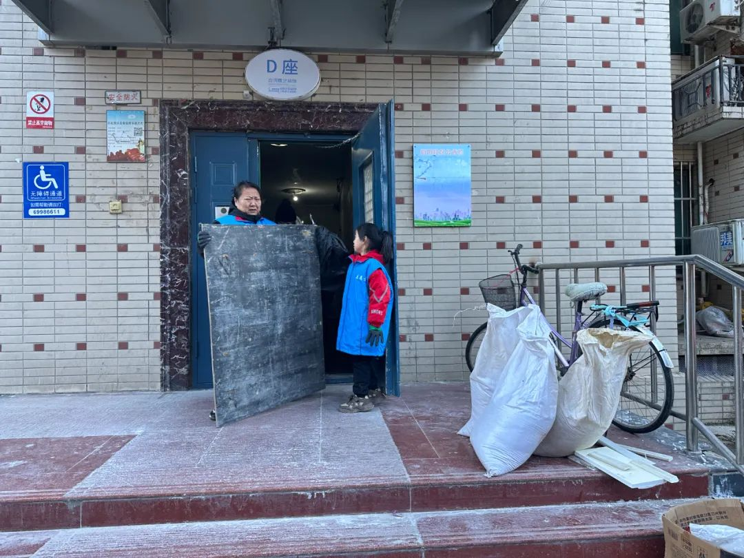 社区积极动员辖区党员、志愿者、居民参与到整治活动中,充分发挥不怕脏、不怕累的精神,深入楼道、卫生死角清理楼道内无人认领的鞋柜、储物柜、废旧木板、废纸箱等杂物,进行了“地毯式”清理,形成整治共识,实现“楼道微自治”从“被动参与”到“主动参与”。