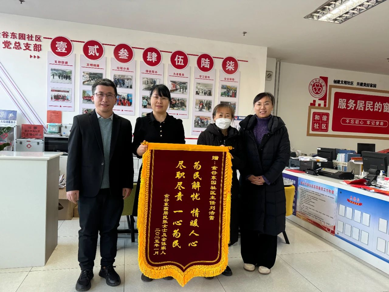 能解决小事才能办好实事。一面锦旗,一份感谢,更承载着一份责任。近日,滨河街道金谷东园社区收到了来自居民赠送的一面锦旗。
