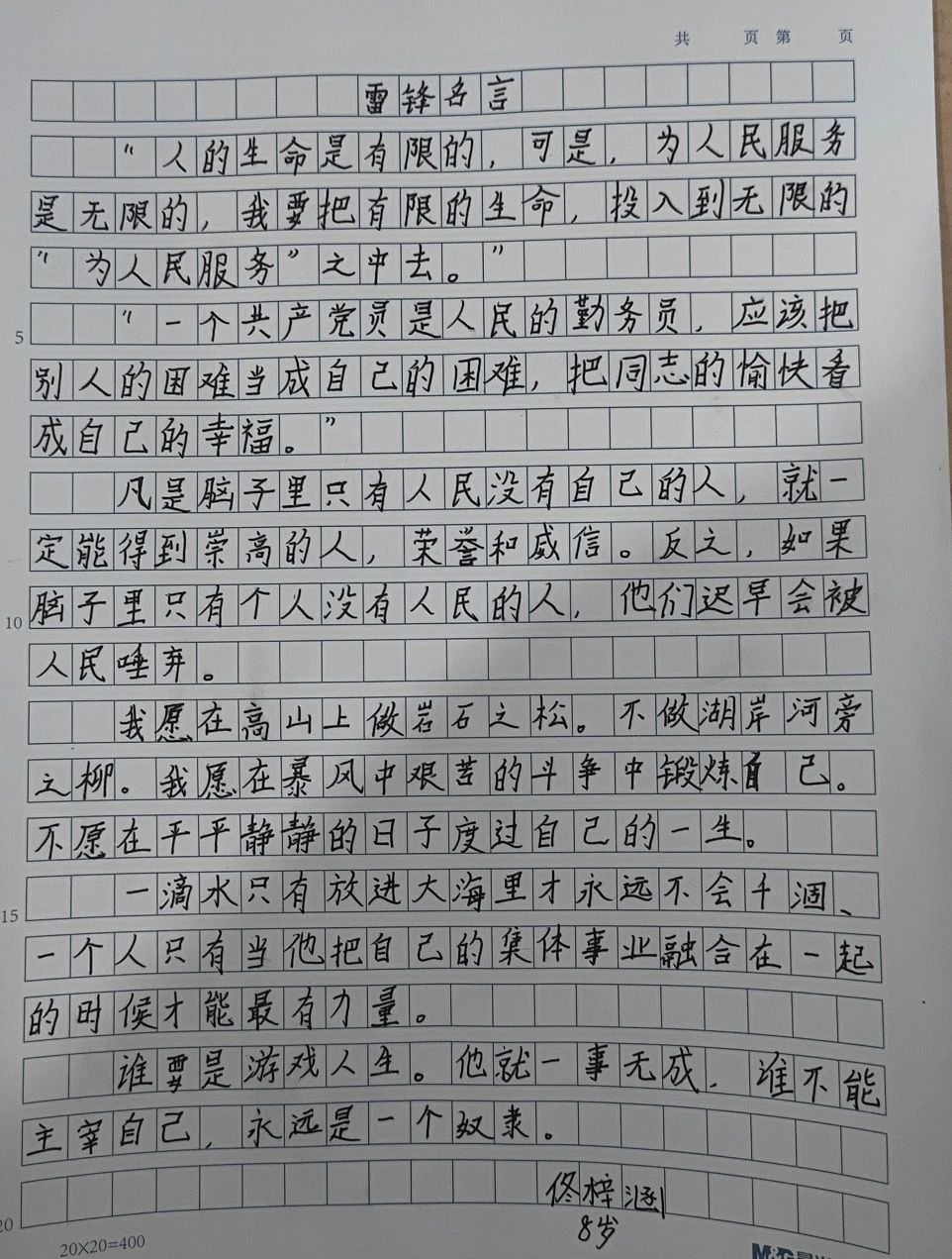 参与者们认真抄写雷锋语录,字里行间流露出对雷锋精神的敬仰与感悟。从“人的生命是有限的,可是为人民服务是无限的”到“我愿永远做一个螺丝钉”,一句句经典语录不仅展现了雷锋无私奉献的精神,也激励着每一位参与者以实际行动践行雷锋精神。