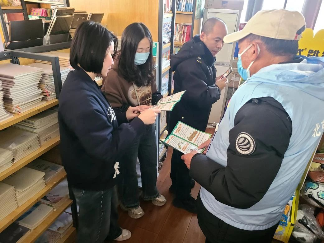 联合检查组先后到物流档案库、校园周边书店、文具店等场所进行检查,重点查看证照是否齐全,是否存在销售印制违禁违法出版物、封建迷信和邪教印刷品、含有色情暴力出版物等问题。通过发放宣传页、讲解的方式向各相关单位进行“扫黄打非”宣传,提示要做到合规经营、文明经营,增强法律意识和责任意识,自觉抵制各种非法出版物的销售和网上有害信息的传播,确保两会期间辖区文化环境清朗安全。
