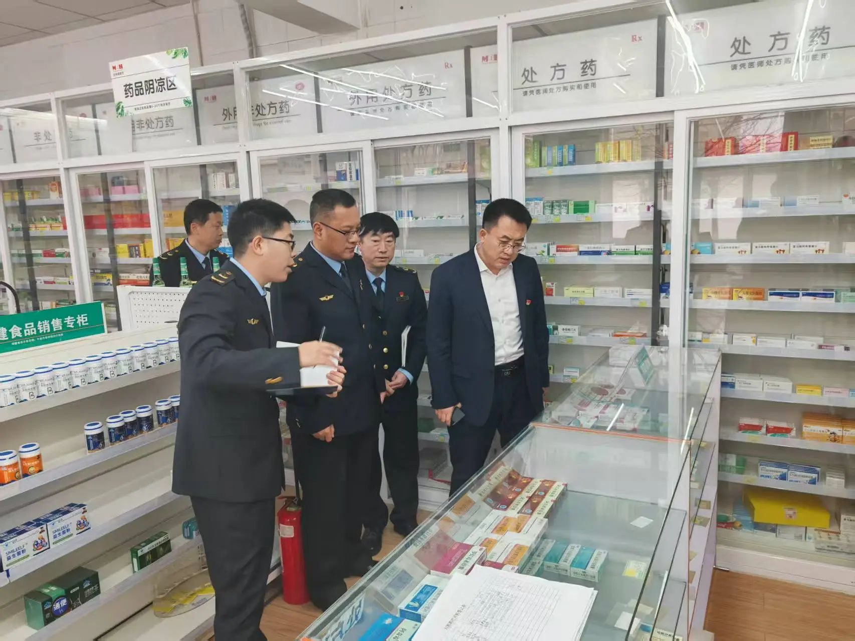 近日,区市场监管局党组书记、局长陈靖带队到北京闵邦韩医药销售有限公司马昌营店检查在售药品、保健品及医疗器械,党组成员、副局长徐保安,相关业务科室参加。