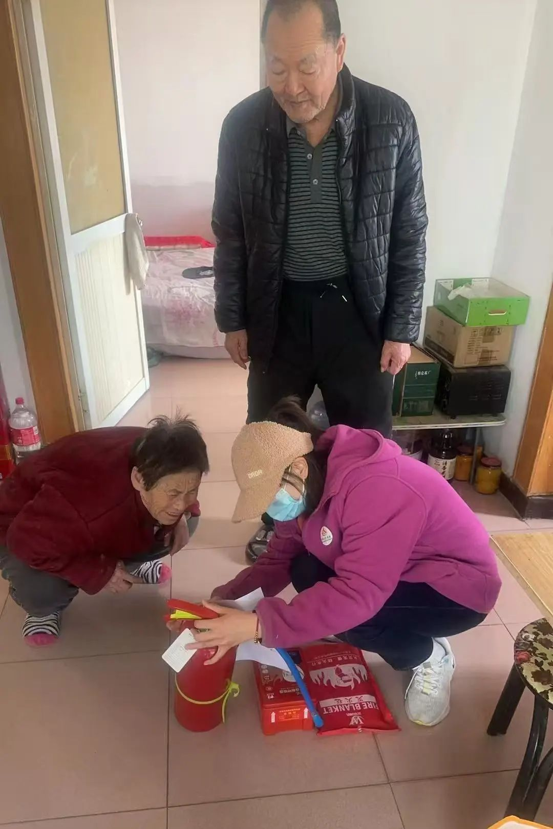 社区工作人员深知,老人们年纪大了,在应对火灾等突发情况时可能会面临更多的困难。因此,为了让老人们能够正确使用消防三件套,社区专门逐户上门为老人进行讲解和演示。每到一户老人家中,都会耐心细致地向老人介绍灭火器、灭火毯和自救呼吸器的功能和使用方法。“大爷,您看这个灭火器,遇到小火情时,拔掉保险销,对准火源根部按压把手就行。”“奶奶,这个是自救呼吸器,发生火灾时戴上头罩拉紧头罩的系带,低姿选择正确逃生路线迅速撤离。”