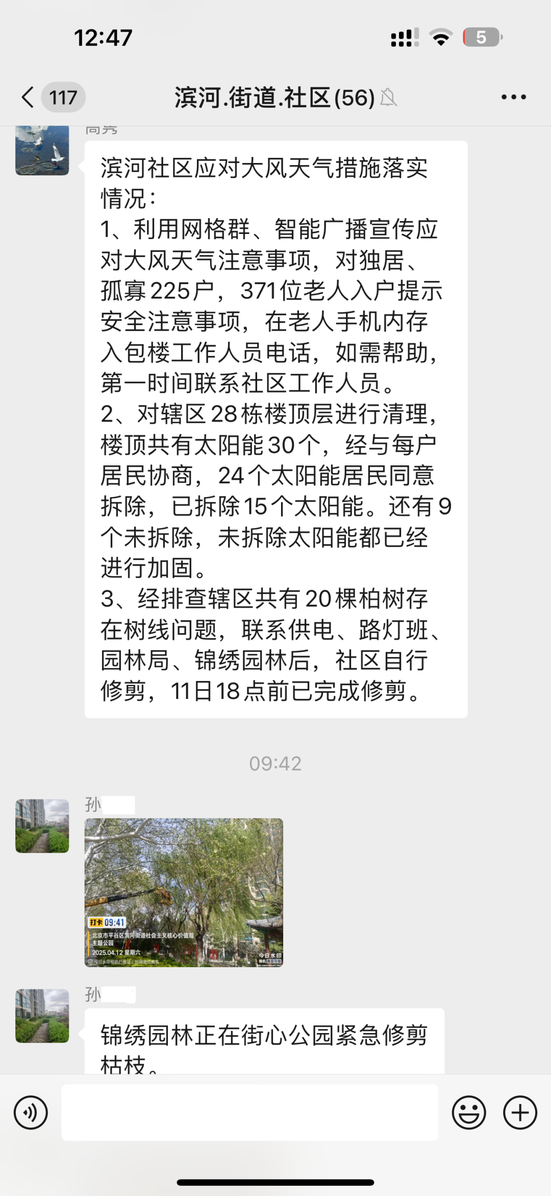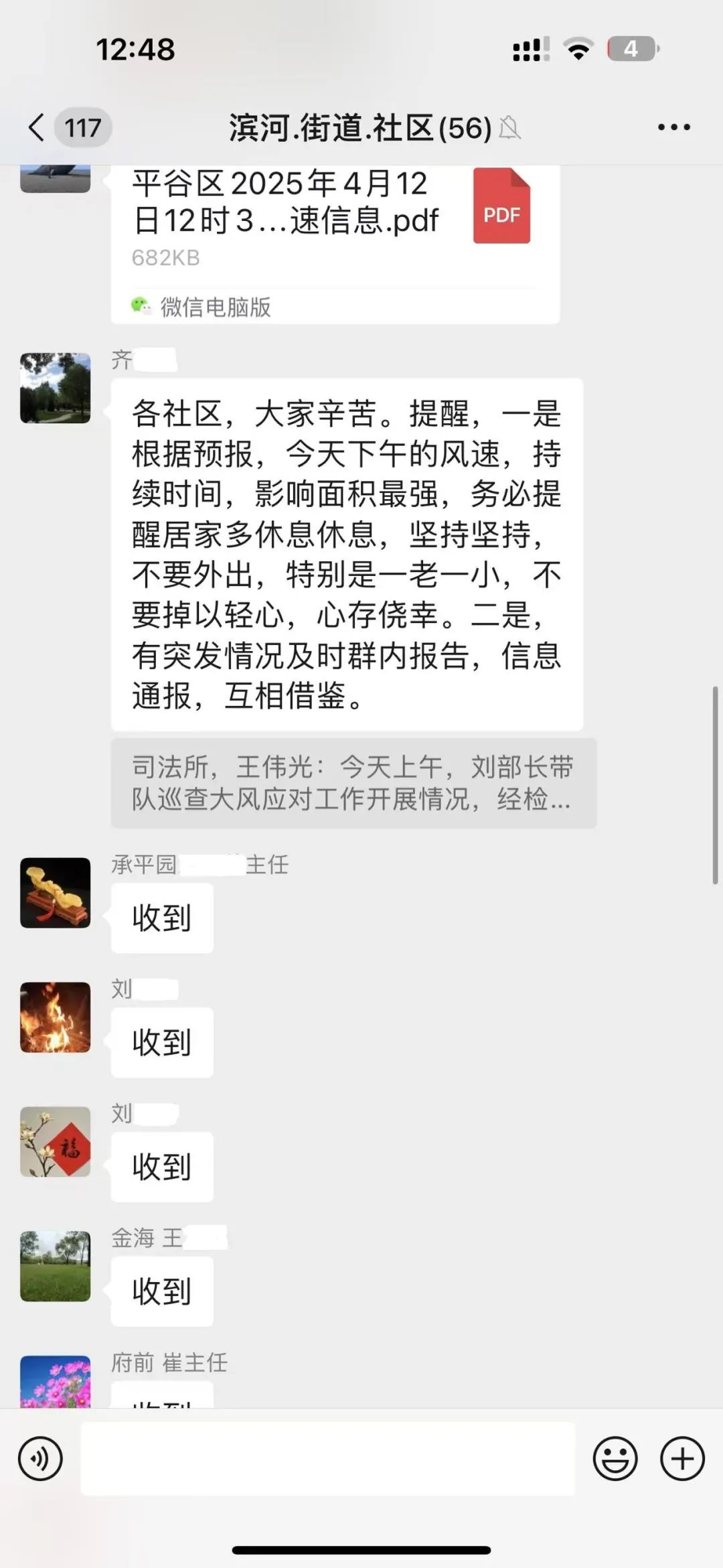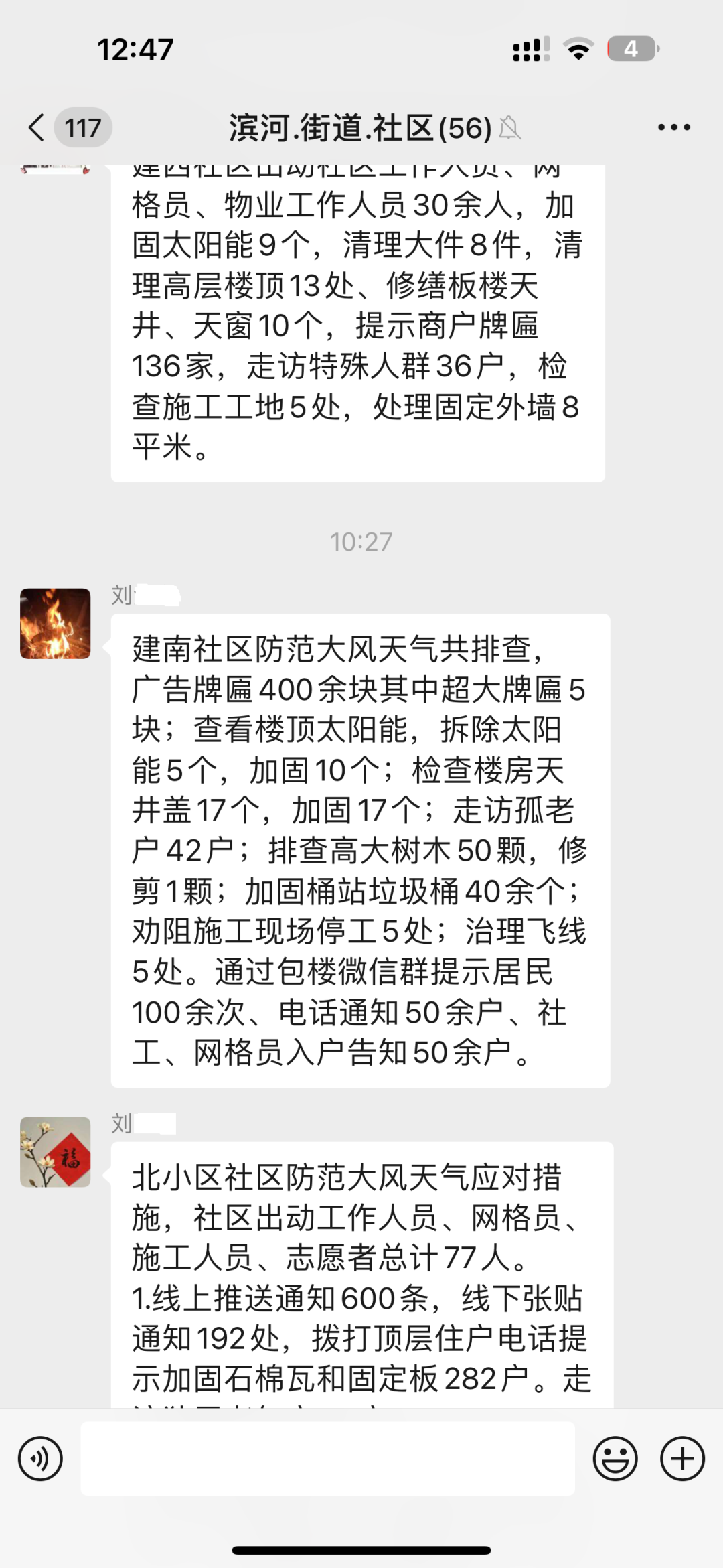 请大家放心,无论风雨多大,滨河街区全体工作人员将始终与您并肩作战。我们将密切关注天气变化,持续加强巡查,全力保障辖区安全稳定。