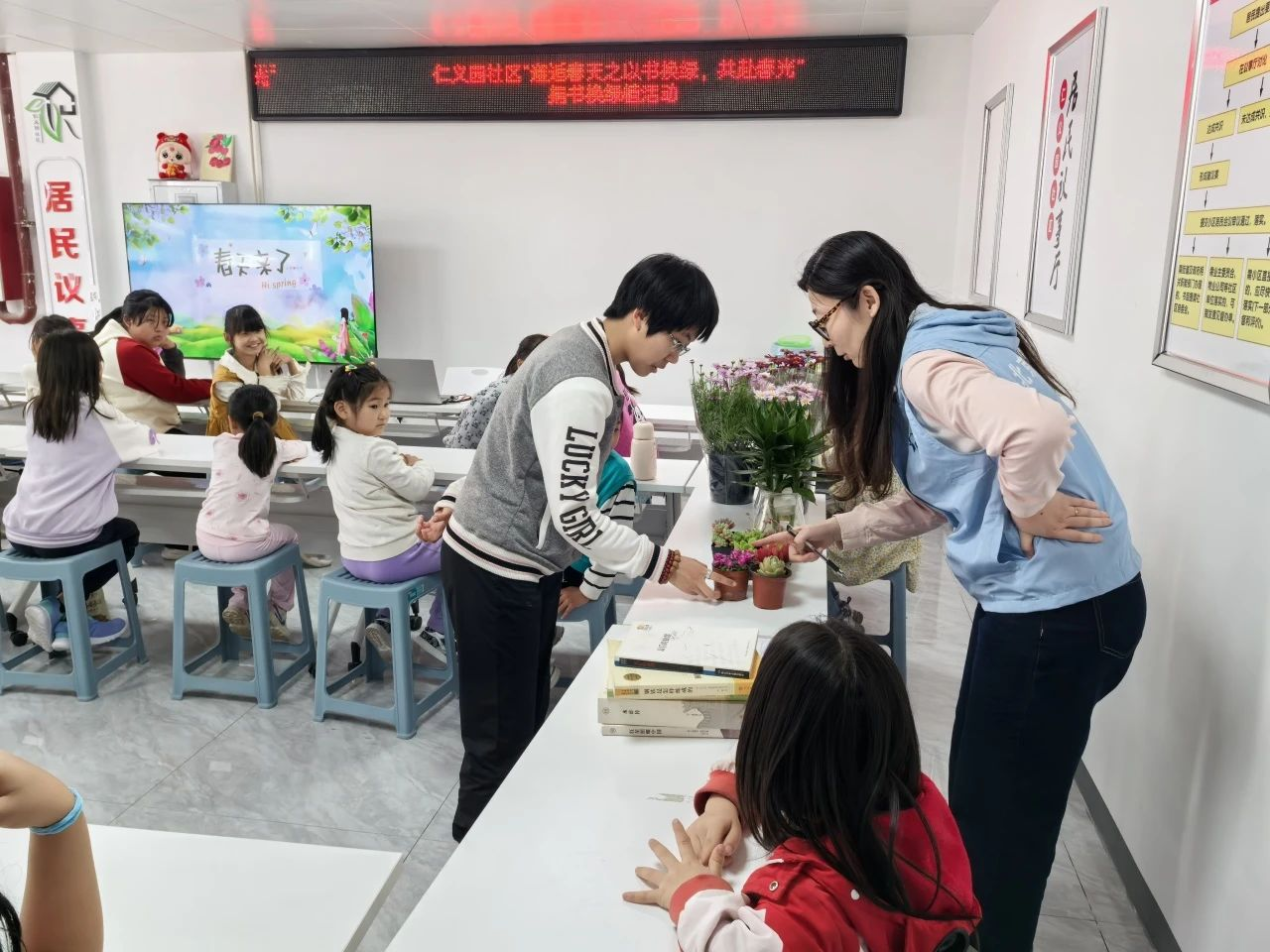 此次邂逅春天系列活动以多元形式展现春日魅力,既倡导了公益环保理念,又增进了邻里交流。随着一本本图书启赴新旅程、一盆盆绿植扎根窗台,仁义园社区的春天不仅在自然的万象更新里,更在居民共建共享的温情中。