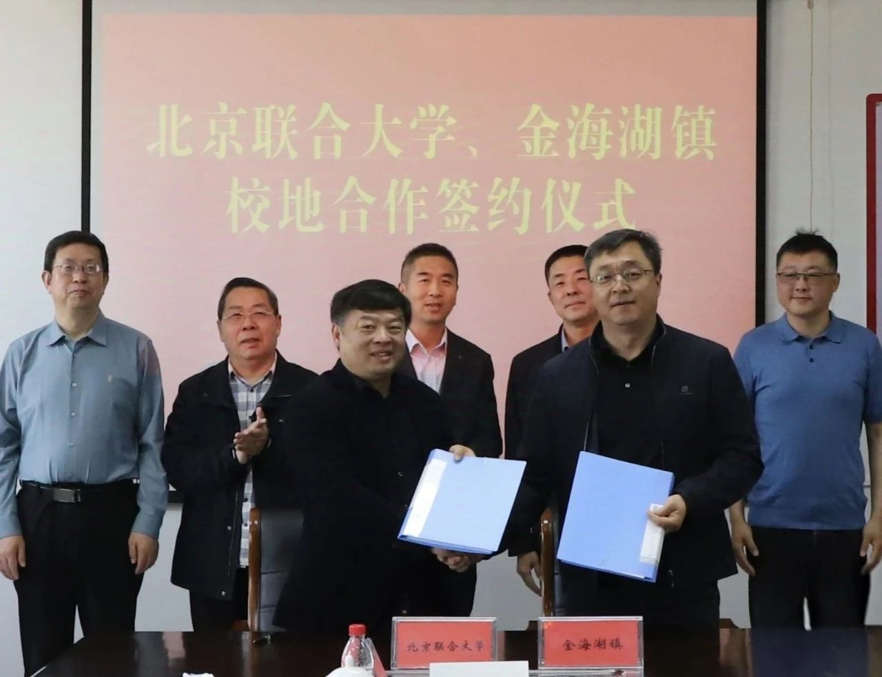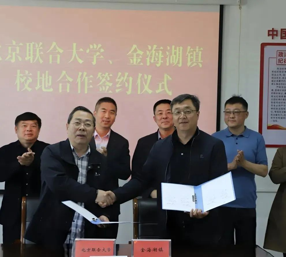 座谈会最后,双方举行校地合作签约仪式。金海湖镇与北京联合大学旅游学院、艺术学院、管理学院签署了延伸合作框架协议,建立长期稳定的合作机制。