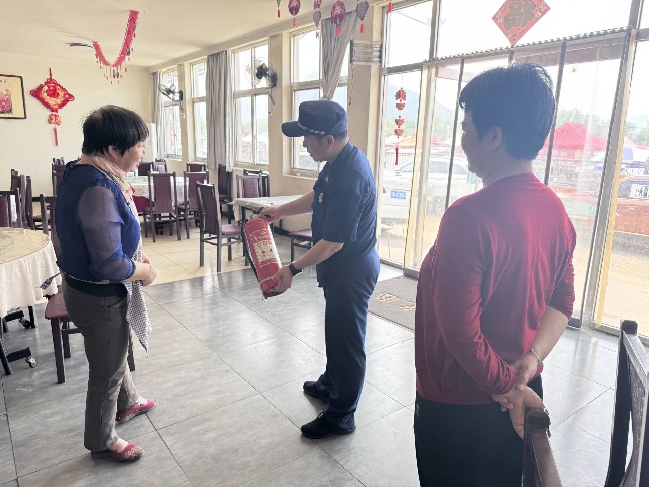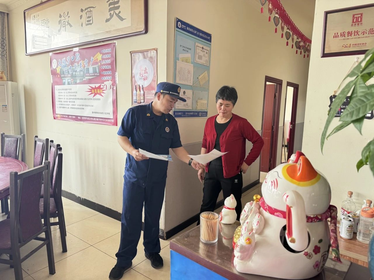 对辖区内超市、饭店等生产经营场所进行安全生产检查,紧盯房屋、消防等领域,重点检查灭火器是否齐全、用电是否规范、警示标语是否粘贴、消防通道是否畅通等隐患问题。