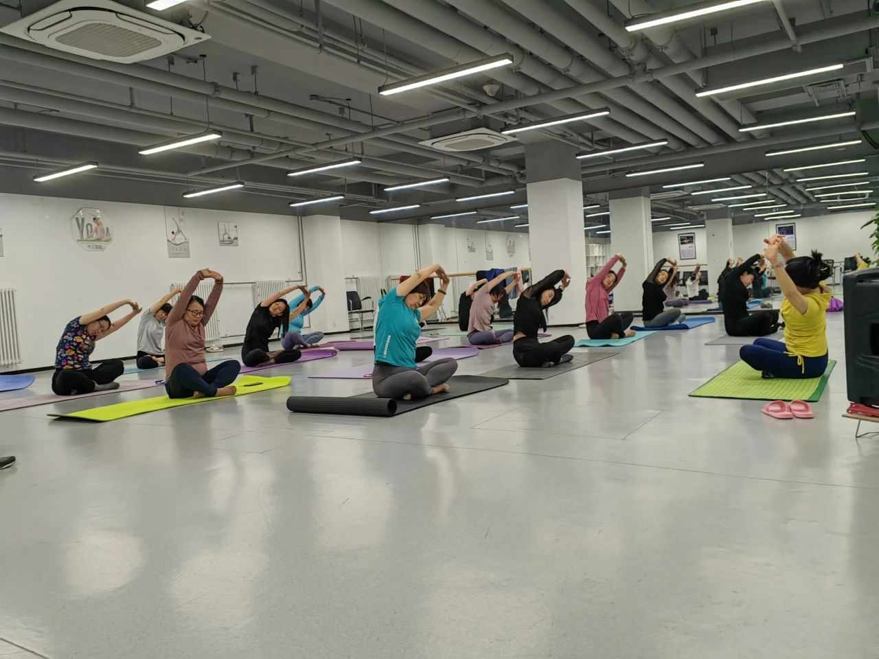 专业瑜伽老师现场授课,课堂上,老师一边向学员们介绍瑜伽的动作要领,一边示范,指导大家调整气息、放松肌肉、舒展双臂。伴随着柔美的轻音乐,大家认真练习着瑜伽动作。同时,老师耐心帮助大家纠正不规范的动作,带领大家逐渐进入轻松宁静的瑜伽世界。一个多小时的学习,大家在舒适的音乐中体验瑜伽的独特魅力,在运动中休养身心,放松自我,缓解压力。