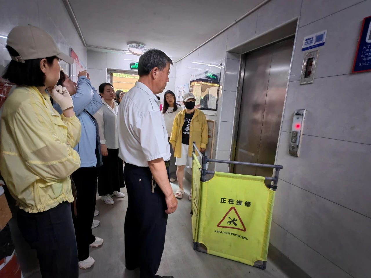 为增强社区居民在电梯困人时的自我保护意识和应急逃生能力,提升物业工作人员应对电梯困人突发事件的应急处置能力,检验电梯应急预案的可行性和有效性,及时发现问题并完善预案,保障居民生命安全。6月13日,邑上原著社区联合中昂物业、电梯维保公司开展“电梯困人”安全演练活动。