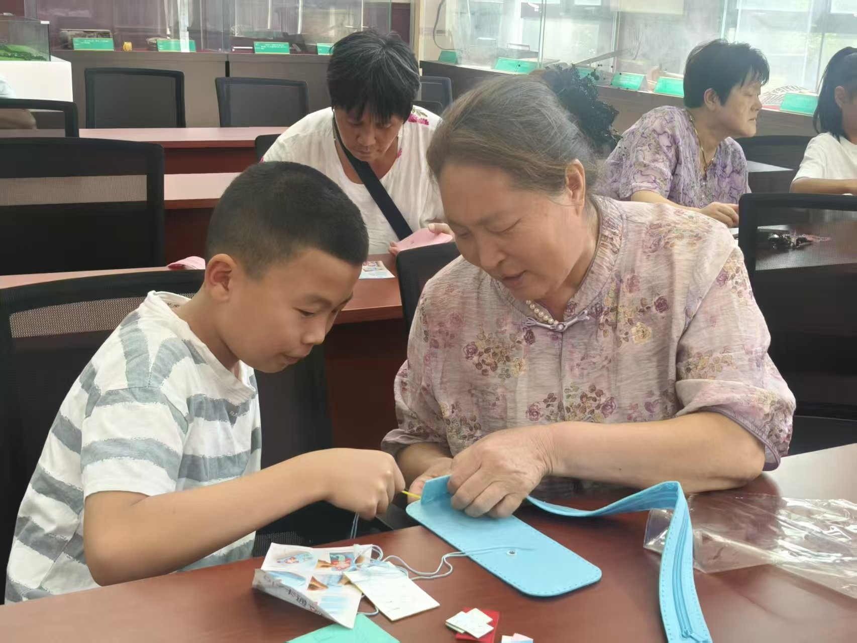 绘本阅读结束后,进入了充满趣味的手工缝制卡通文具盒环节。工作人员为孩子们准备了彩色布料、针线、装饰配件等丰富材料 。在指导老师耐心示范和讲解下,孩子们迫不及待地动起手来。有的孩子在文具盒上缝出可爱的小兔子,有的缝出超级英雄,还有的用彩色珠子和亮片进行装饰。家长们也积极参与,和孩子一起讨论设计,帮忙固定布料,现场满是欢声笑语。孩子们捧着自己的作品,脸上洋溢着自豪与喜悦。