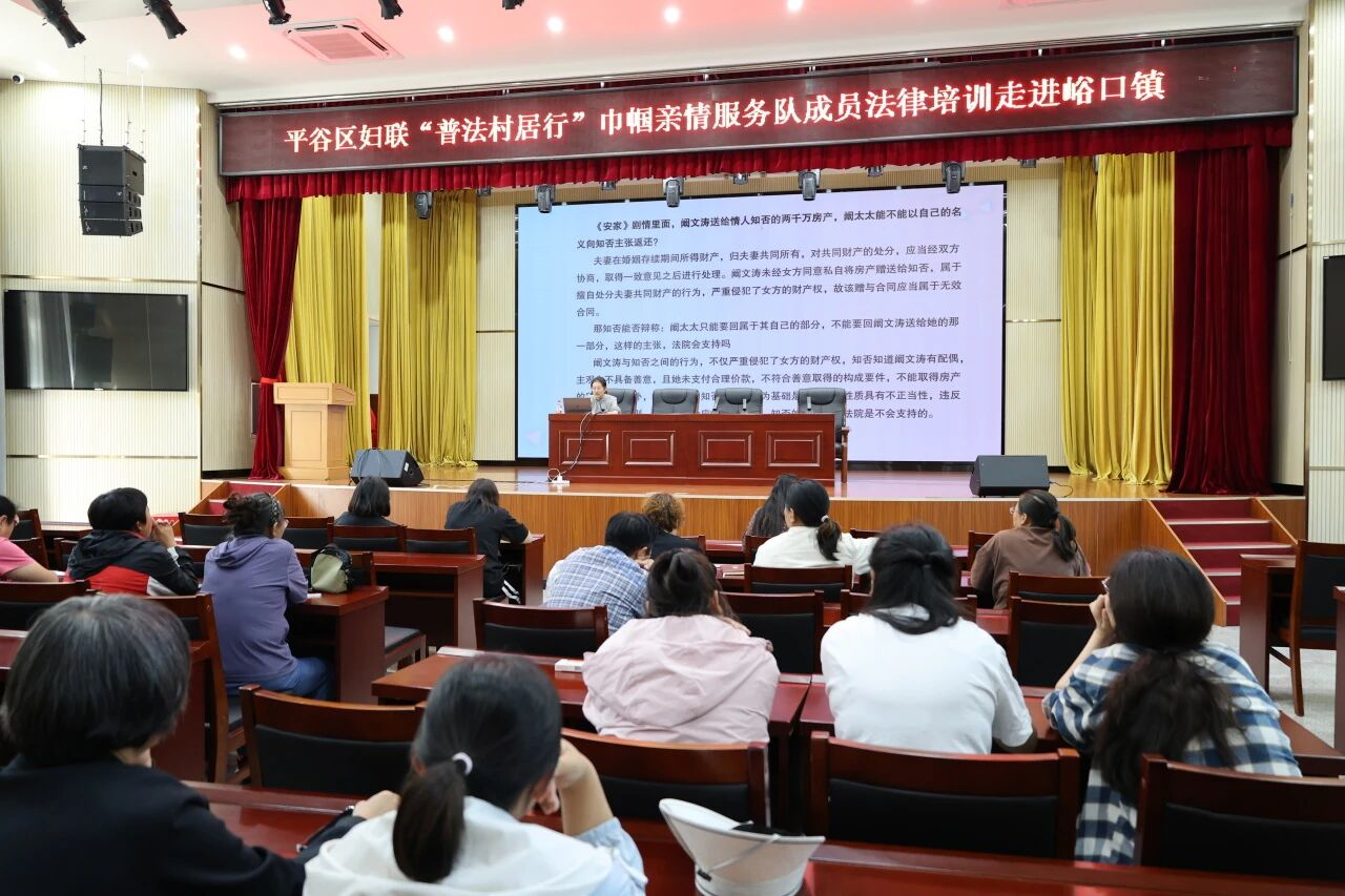 9月19日,平谷区妇联“普法村居行”巾帼亲情服务队成员法律培训走进峪口镇。活动特邀北京市方桥律师事务所袁杨律师,为40余名服务队成员开展《民法典》婚姻家庭编专题培训,助力成员筑牢家庭幸福法治基石。