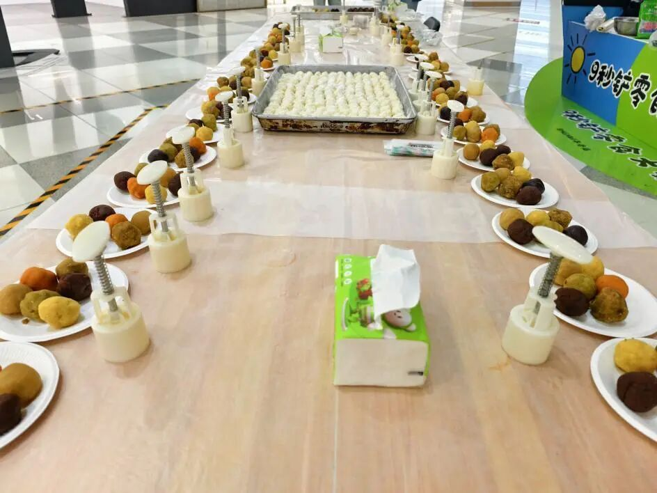 手工月饼制作区飘散着阵阵甜香。在面点师傅的耐心指导下,大家揉捏饼皮、包入馅料、压模定型,每一个步骤都做得格外认真。豆沙、莲蓉、五仁等传统馅料勾起浓浓的中秋记忆,当印有“幸福”、“团圆”字样的月饼成型时,现场洋溢着成就感与欢声笑语。